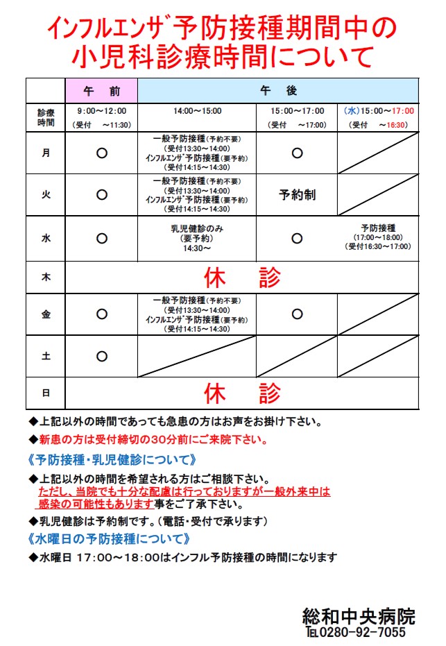 診療内容の詳細は下記まで TEL 0280-92-7055 ***診療時間*** 9:00~18:00(月・水・金)9:00~17:00(火)9:00~12:00(木・土)